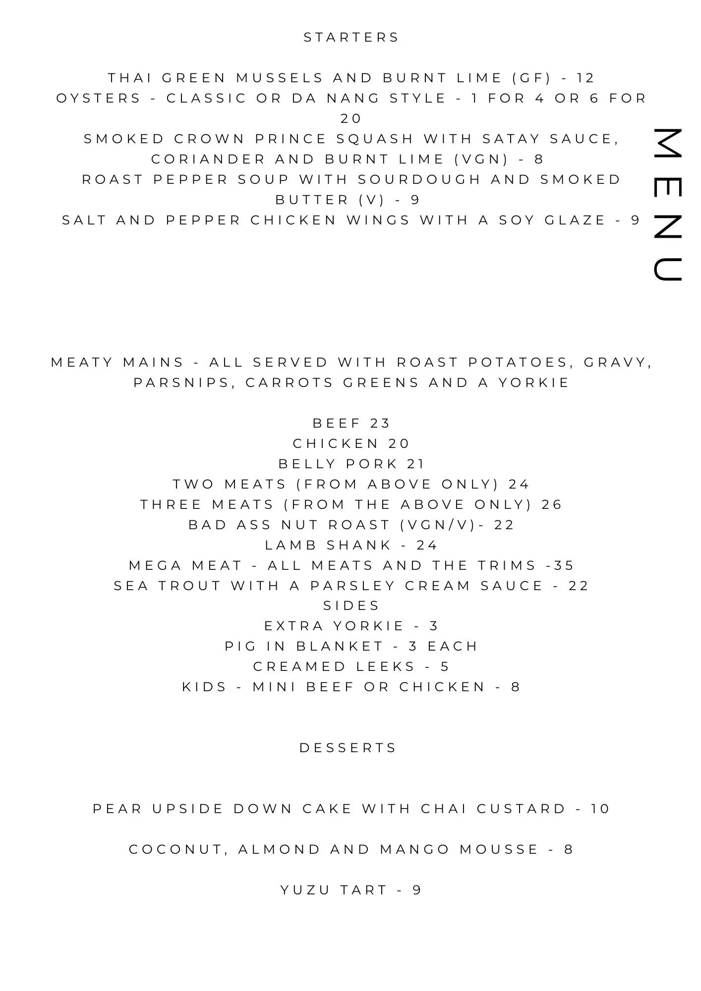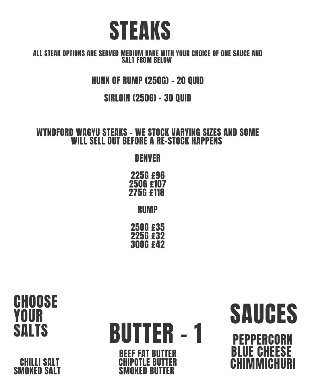 Time to see what all the fuss is about…menus are samples - we are always evolving these and adding specials along the way too…